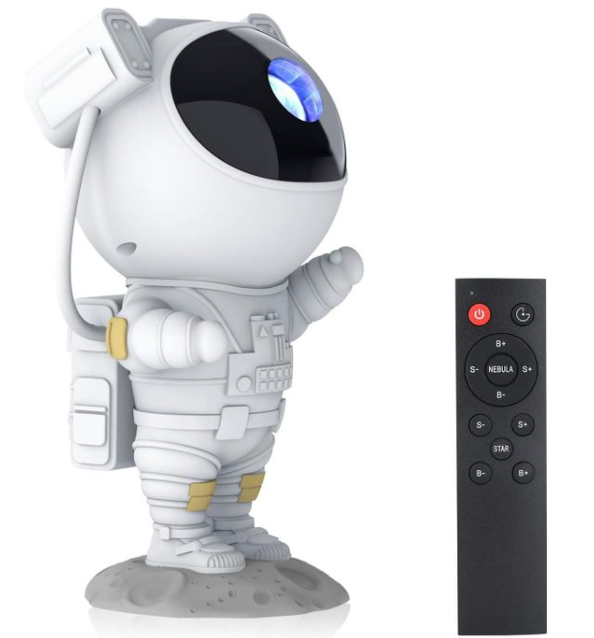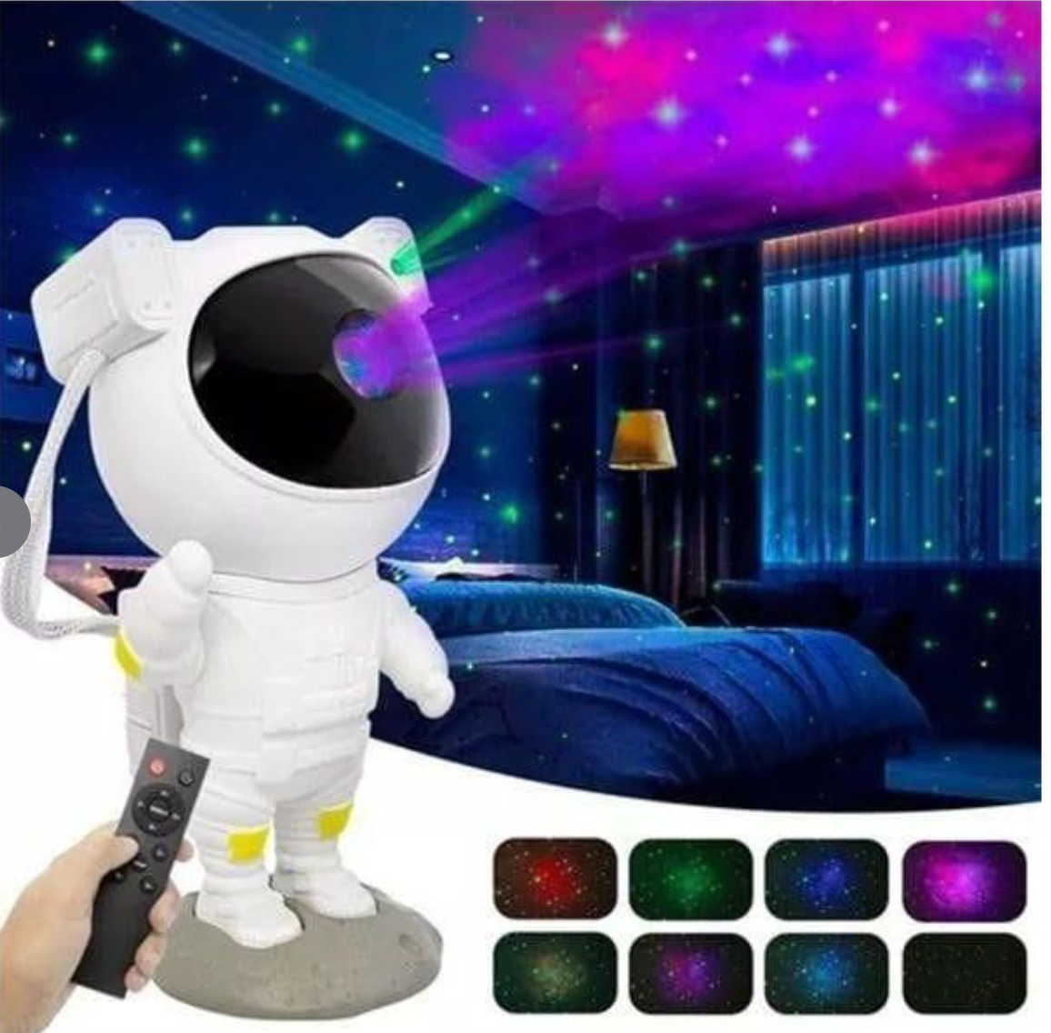 بروجيكتور النجوم على شكل رائد الفضاء كيدير أجواء مريحة وساحرة فالليل، مثالي للأطفال والكبار باش يسترخوا وينعسو فجو هادي وجميل ✨
