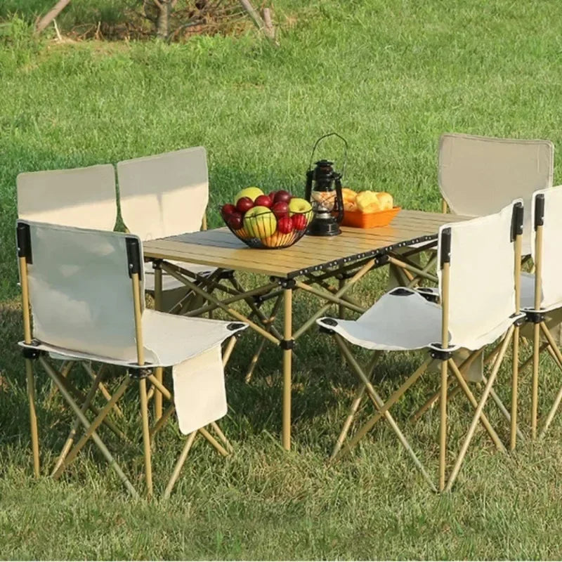 طاولة تخييم محمولة وخفيفة الوزن مع حقيبة حمل سهلة، مثالية للرحلات والتخييم والنزهات. تتميز بتصميم قابل للطي على شكل "رول" لتوفير مساحة وتسهيل النقل. مصنوعة من مواد متينة تتحمل الاستخدام الخارجي، مما يجعلها خيارًا مثاليًا لرحلات القيادة الذاتية والتجمعات في الهواء الطلق.